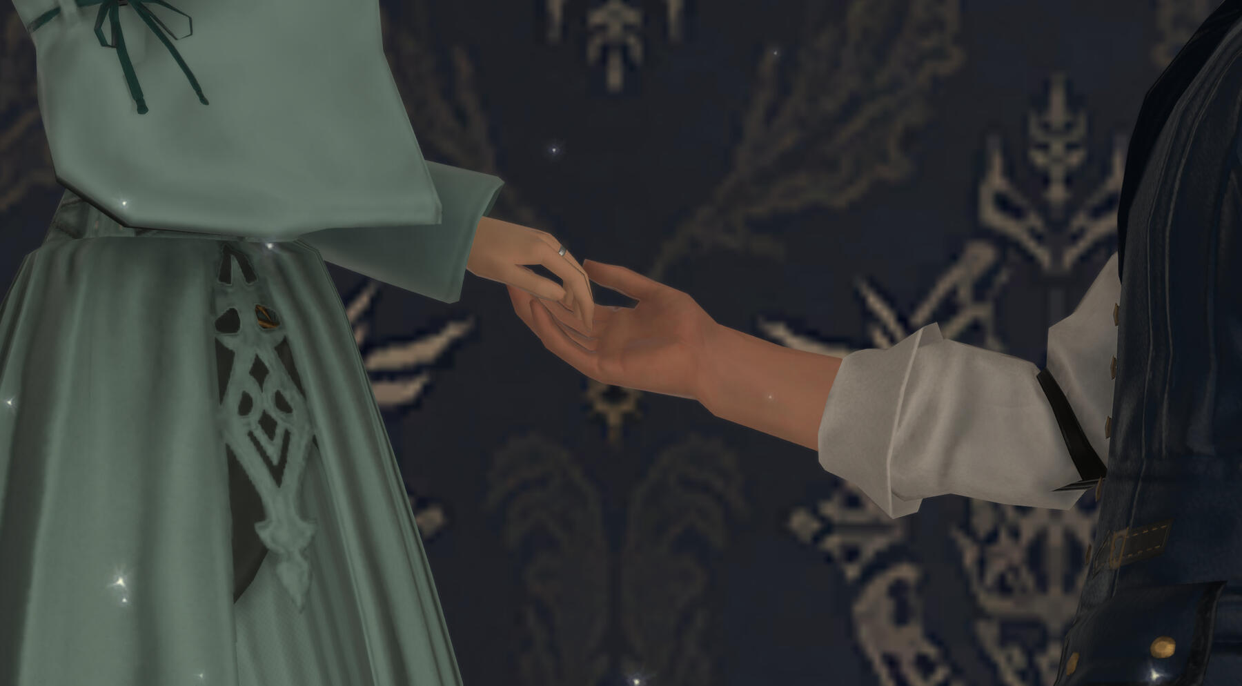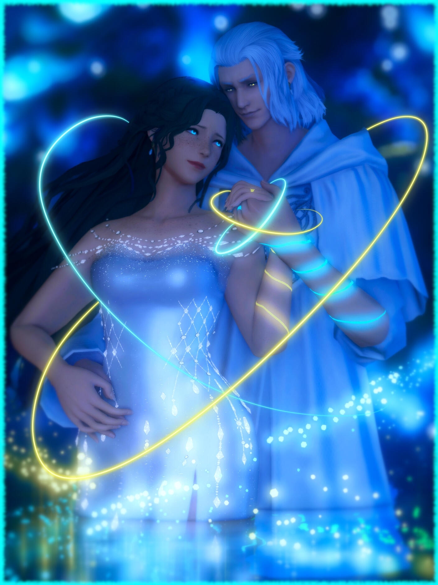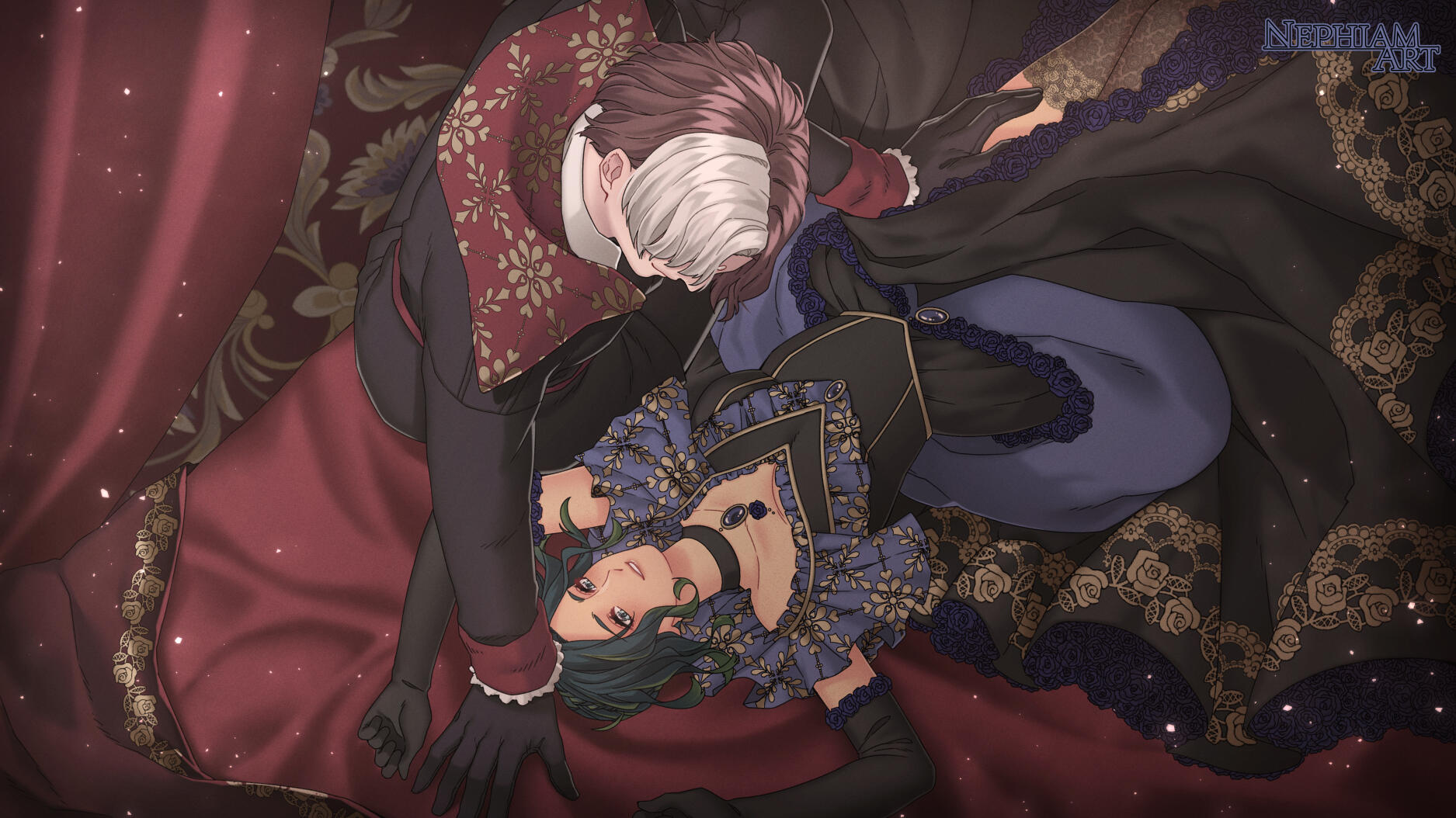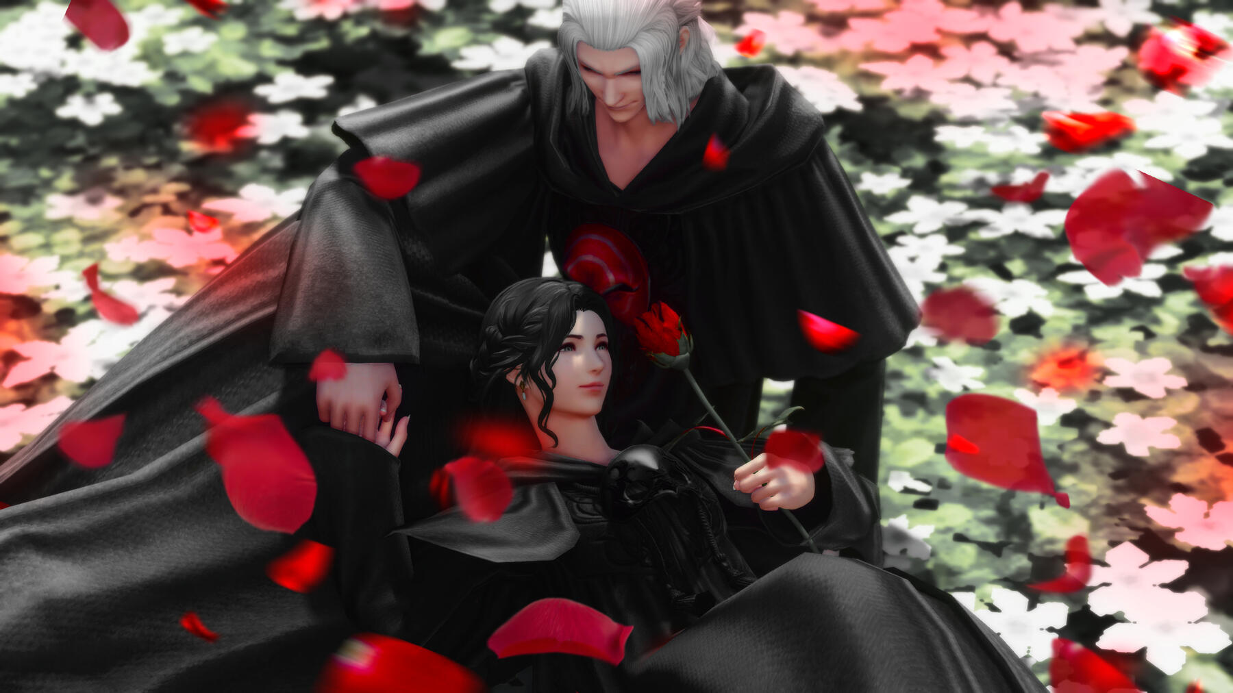 There is a rare but special partnership some few privileged Ancient souls experience called soul bonding. Though the phenomenon puzzles even the most knowledgeable scholars of Etheirys, it is an undeniable bond that's born of the purest love, respect, and adoration. Their souls would reach out to one another in a warm embrace, coalescing together to share each other's emotions and experiences in the most beautiful way. It is believed that this love transcends time itself. Persephone and Hades are two such souls that finally understand this tug at their souls after Hades ascends to the seat of Emet-Selch. For many years did their love blossom, that admiration for each other's differences and strengths flourishing akin to a beautiful bloom. For Persephone, it was his compassion for their star and his sentimental heart that drew her to him. As for Hades, he fell in love with the brightness of her soul and her strong convictions. He now wears one of her signature earrings, each bearing one of the pair for their newfound partnership. To say the least, Hythlodaeus is not shocked at all by these turn of events.