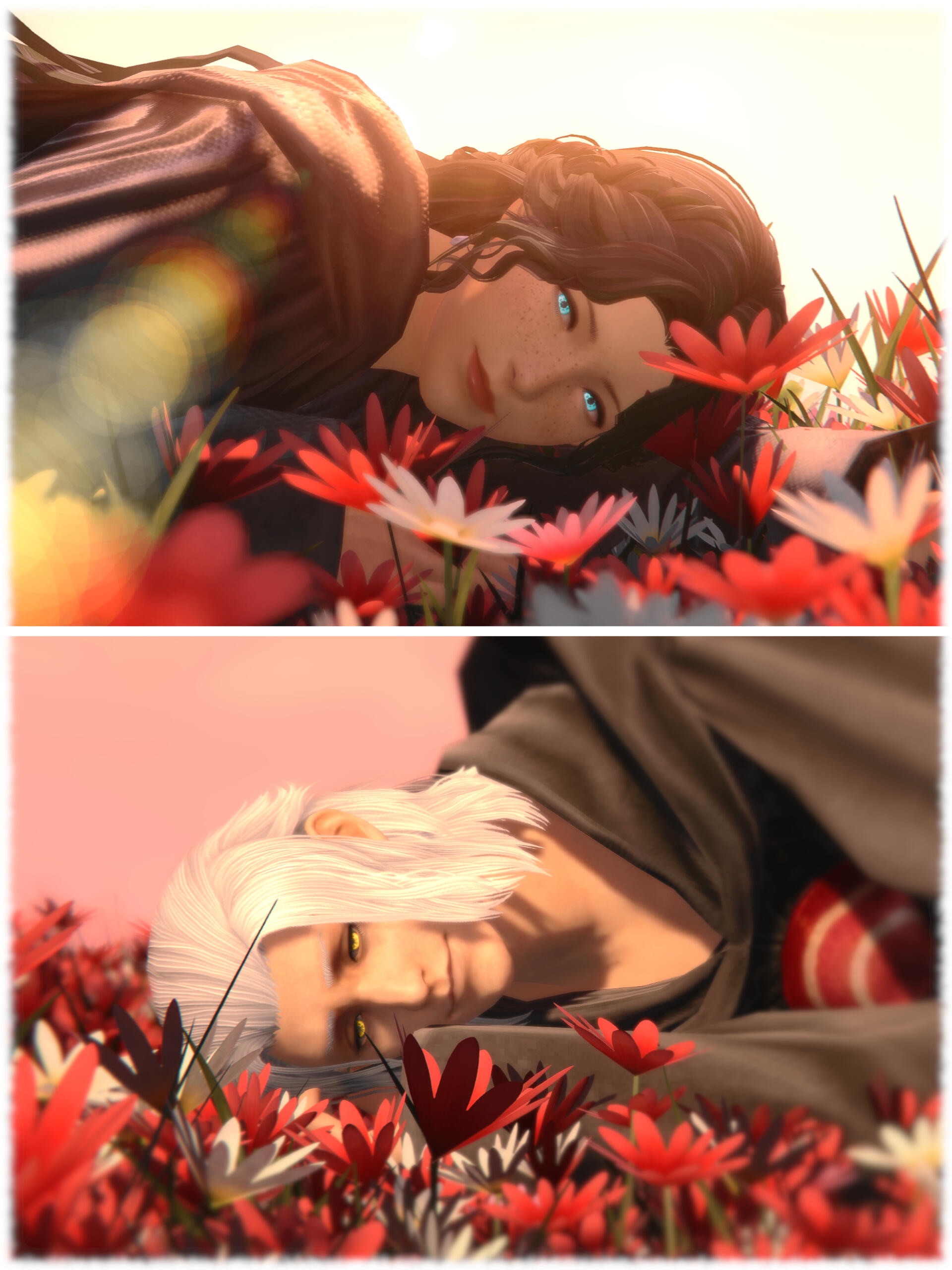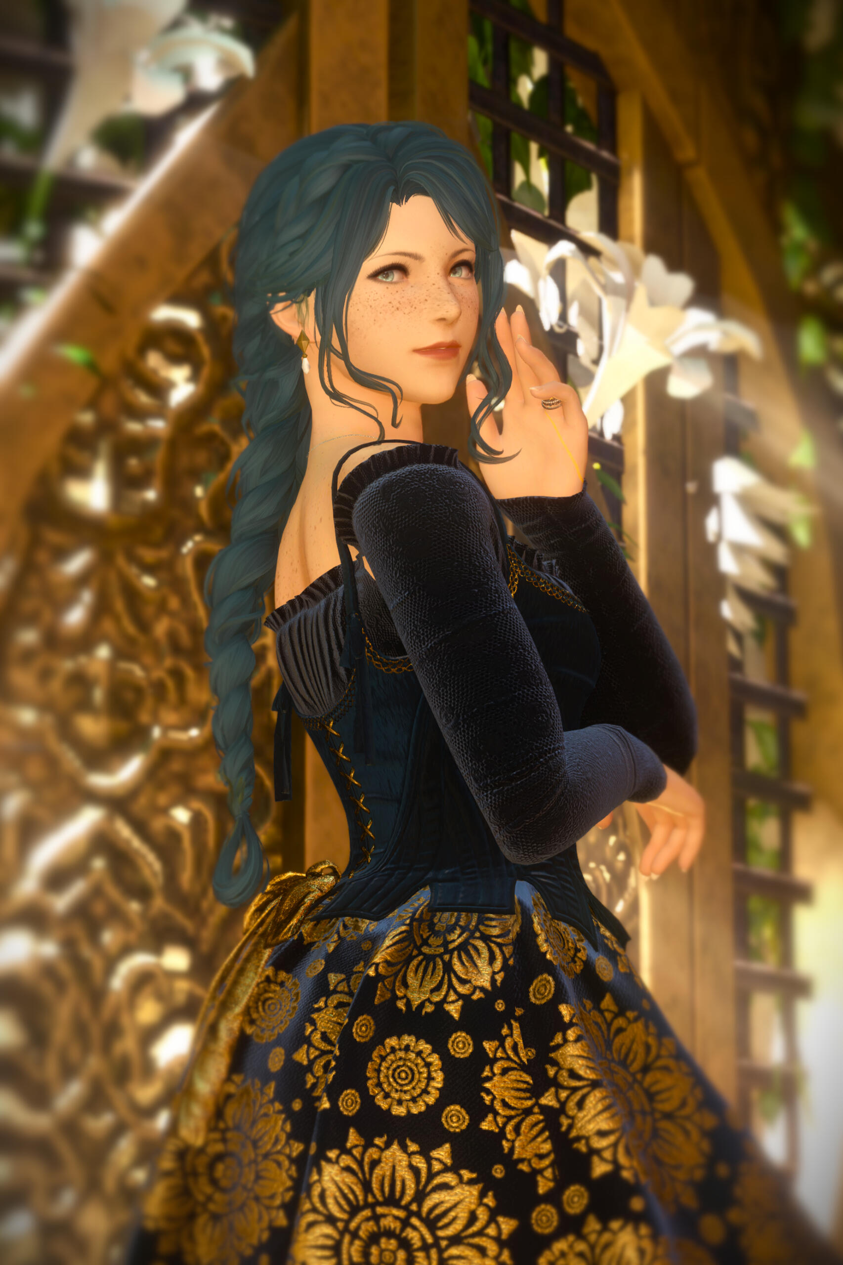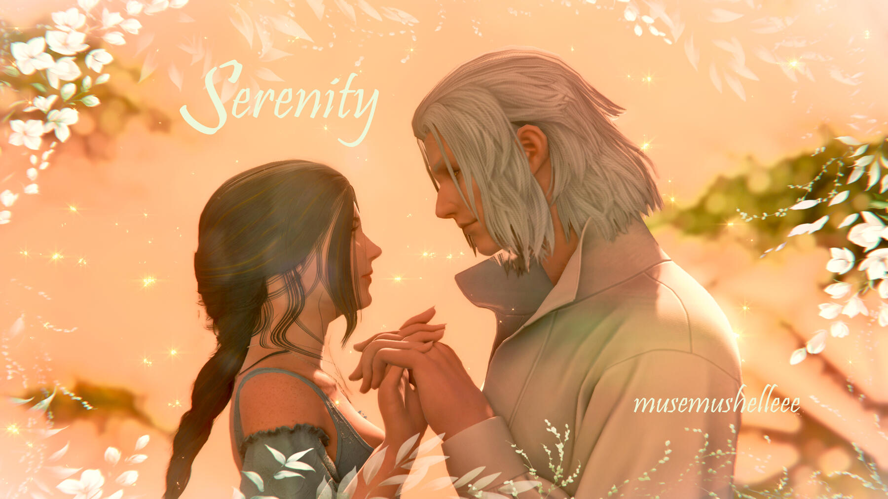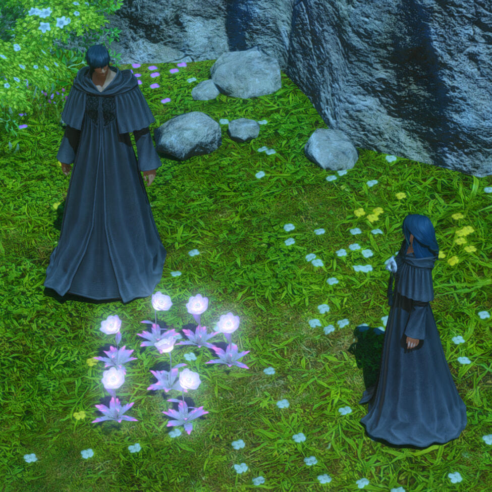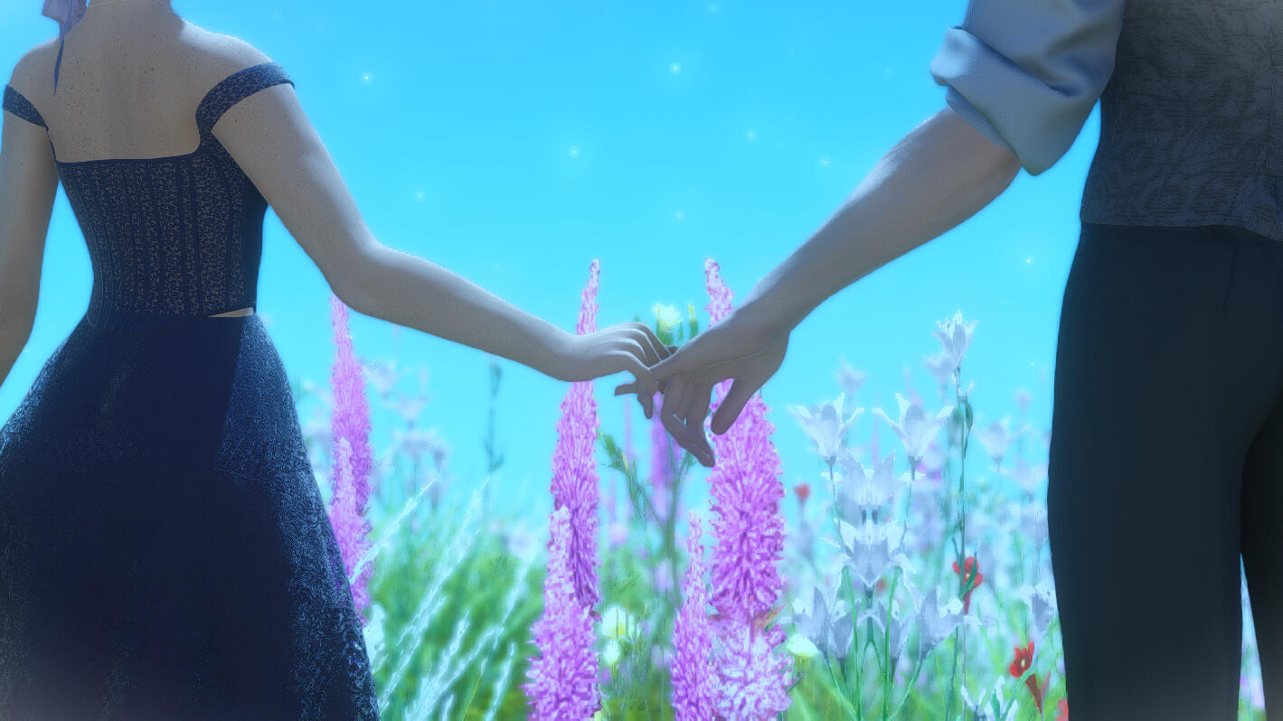 Gemma has amicably ended her engagement with Aymeric. Six moons on the Source have passed since she journeyed to the First, and with the Final Days looming, she travels to Sharlayan in search of the answers on how to stop the coming calamity. On her journey, she speaks with a ghostly figure of a woman in white who rings very familiar to her. It is Hydaelyn that bestows upon her a gift - a bright bloom that will guide Gemma on her journey. In her travels through Sharlayan, Thavnair, Garlemald, and Mare Lamentorum, she finds the flower blooming a different hue with the array of emotions she experiences. Joy, friendship, acceptance, and gratitude. But Fandaniel's plans come to fruition when he takes the place of Zodiark's heart, forcing her to strike down the weakened ancient primal. The Final Days were upon them, Zodiark's power in stagnating the corruption lost. With Thavnair burning from the horrors of the calamity, she has to find the answers within the "Elpis" bloom. She speaks to Elidibus in the Crystal Tower of the First, and in recognition of the bloom's name, bids her to travel to the past unsundered world to find the gentle Hermes. But it was not just he who she would cross paths with.