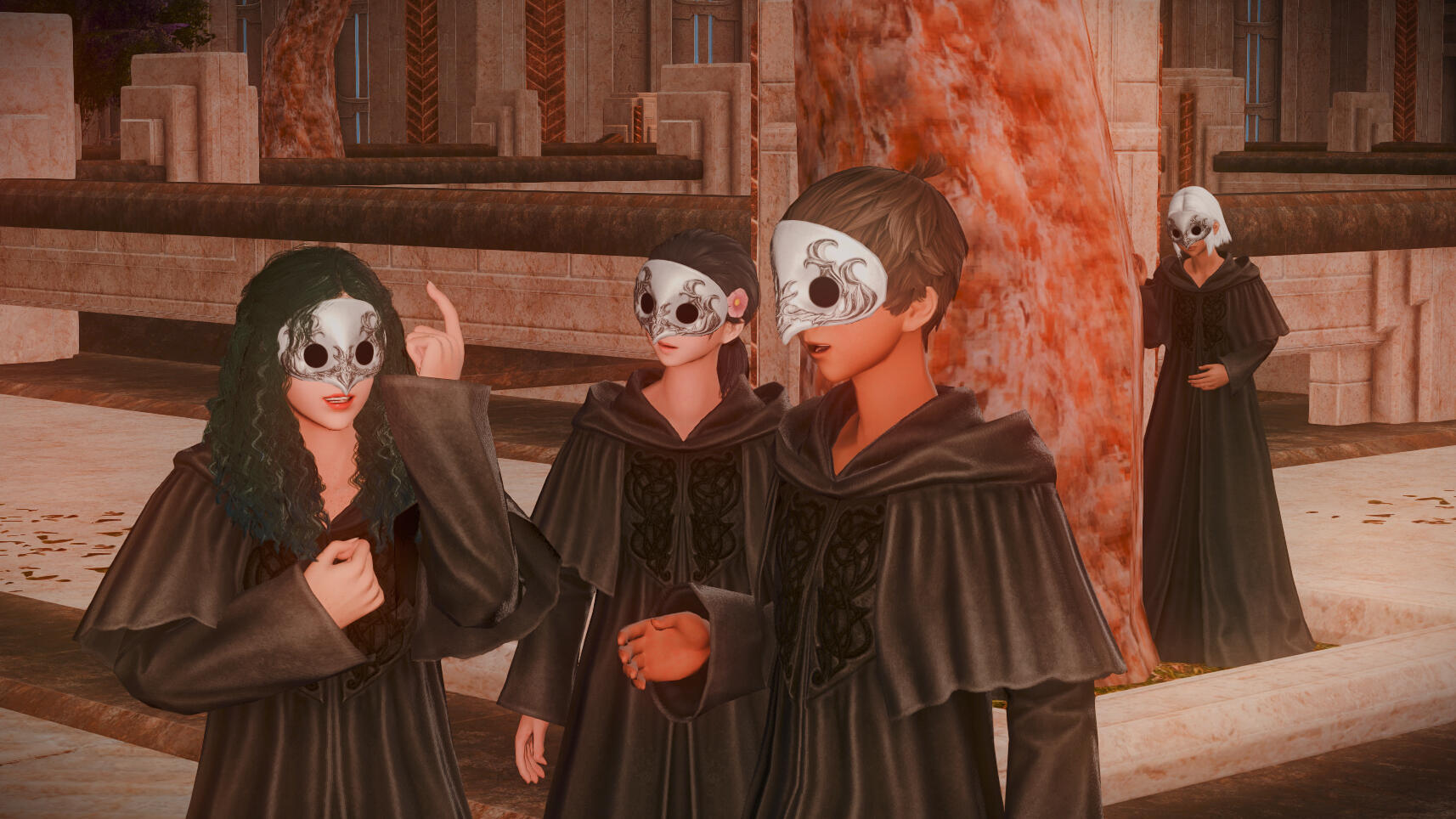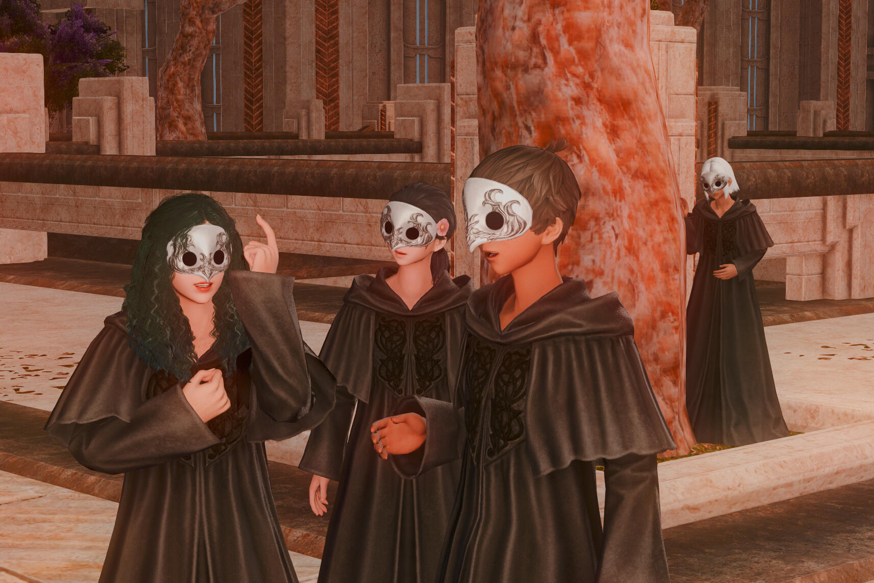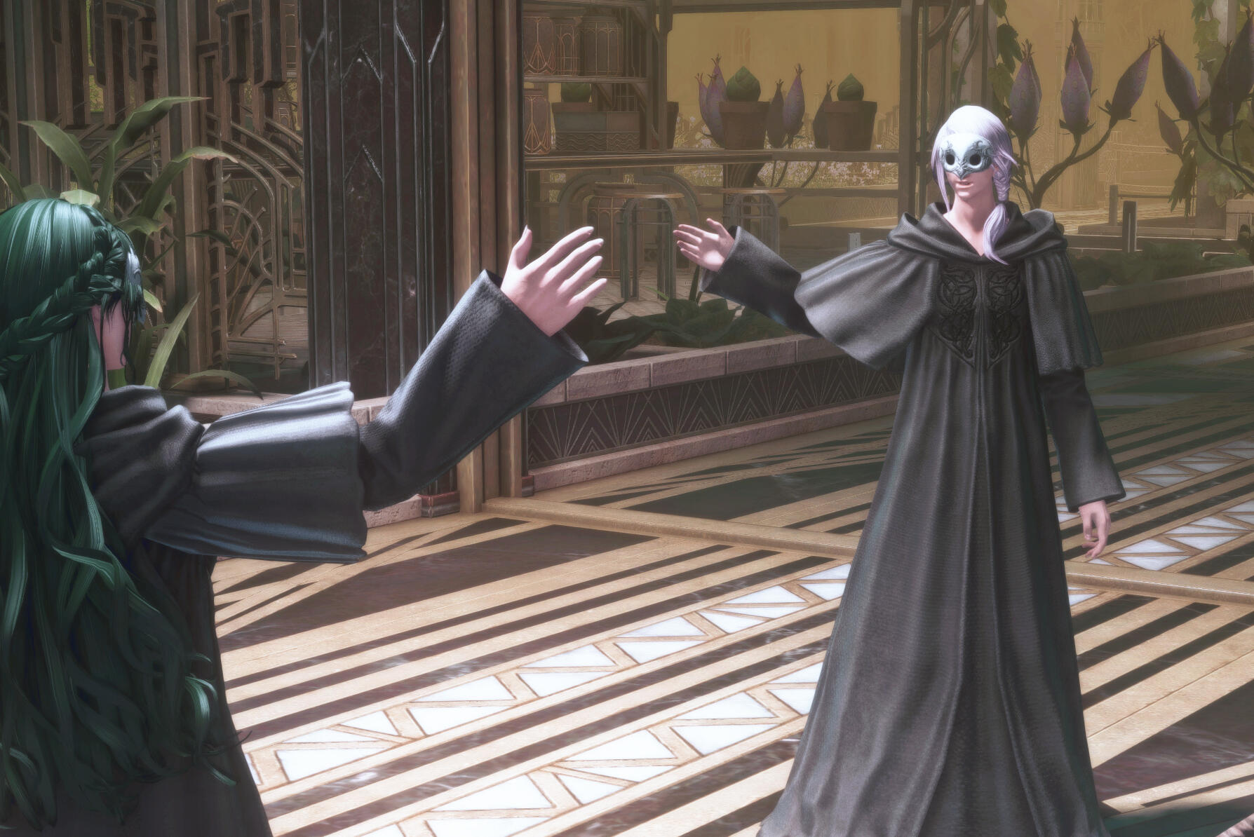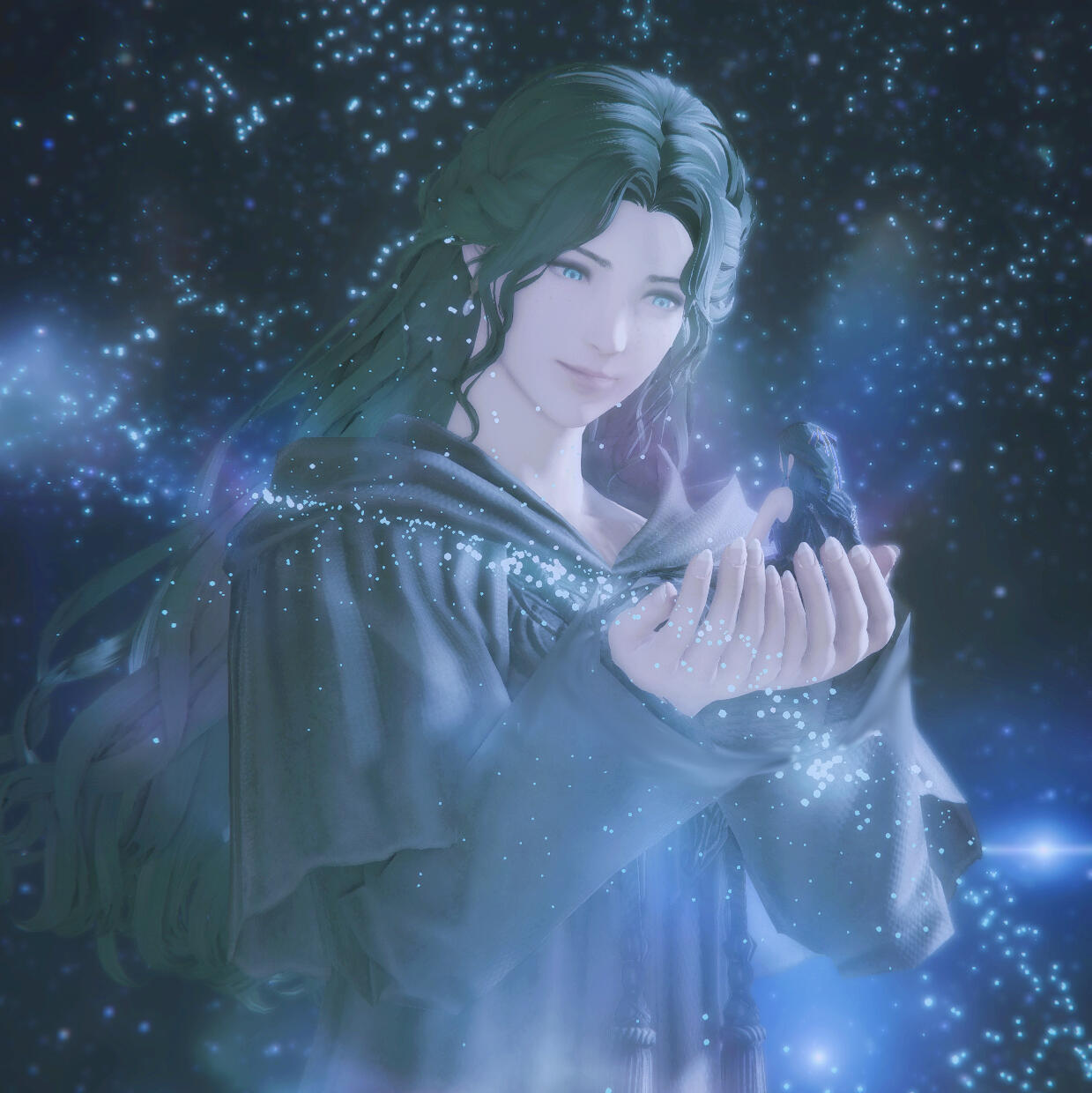 Gemma has amicably ended her engagement with Aymeric. Six moons on the Source have passed since she journeyed to the First, and with the Final Days looming, she travels to Sharlayan in search of the answers on how to stop the coming calamity. On her journey, she speaks with a ghostly figure of a woman in white who rings very familiar to her. It is Hydaelyn that bestows upon her a gift - a bright bloom that will guide Gemma on her journey. In her travels through Sharlayan, Thavnair, Garlemald, and Mare Lamentorum, she finds the flower blooming a different hue with the array of emotions she experiences. Joy, friendship, acceptance, and gratitude. But Fandaniel's plans come to fruition when he takes the place of Zodiark's heart, forcing her to strike down the weakened ancient primal. The Final Days were upon them, Zodiark's power in stagnating the corruption lost. With Thavnair burning from the horrors of the calamity, she has to find the answers within the "Elpis" bloom. She speaks to Elidibus in the Crystal Tower of the First, and in recognition of the bloom's name, bids her to travel to the past unsundered world to find the gentle Hermes. But it was not just he who she would cross paths with.