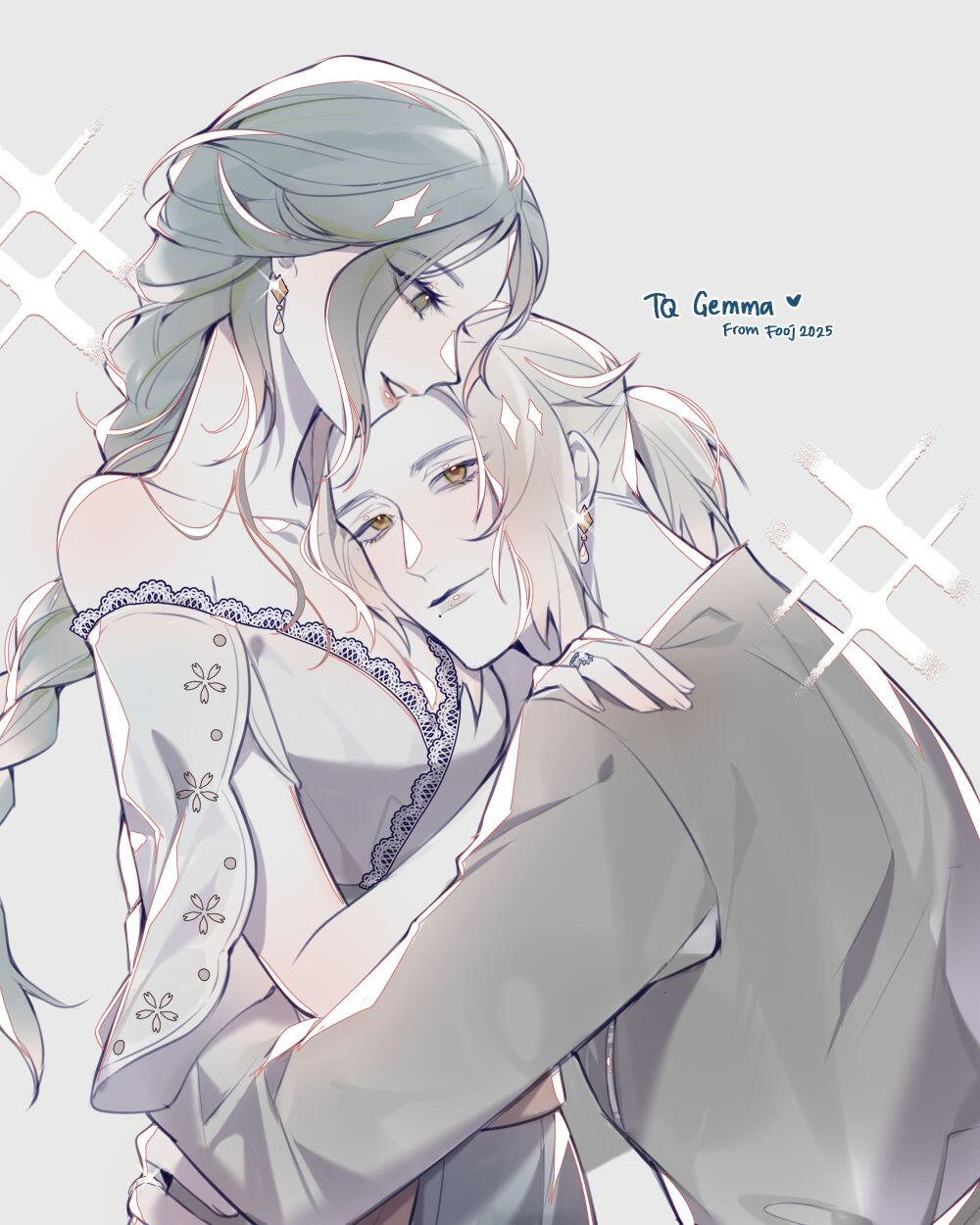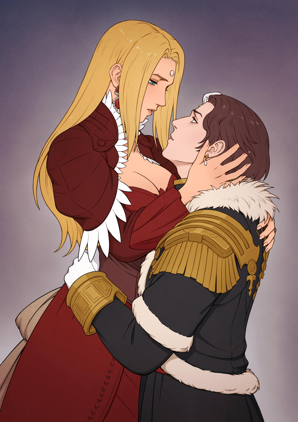 Aymeric was Gemma's first love. They found comfort and respect for each other, leading to friendship and then romance. In the canon game timeline, she marries him after the events of Endwalker. In Gemma's new canon timeline, the two of them amicably end their engagement due to her feelings for Hades. He respects and loves her, only wishing for what's best for her in every timeline.