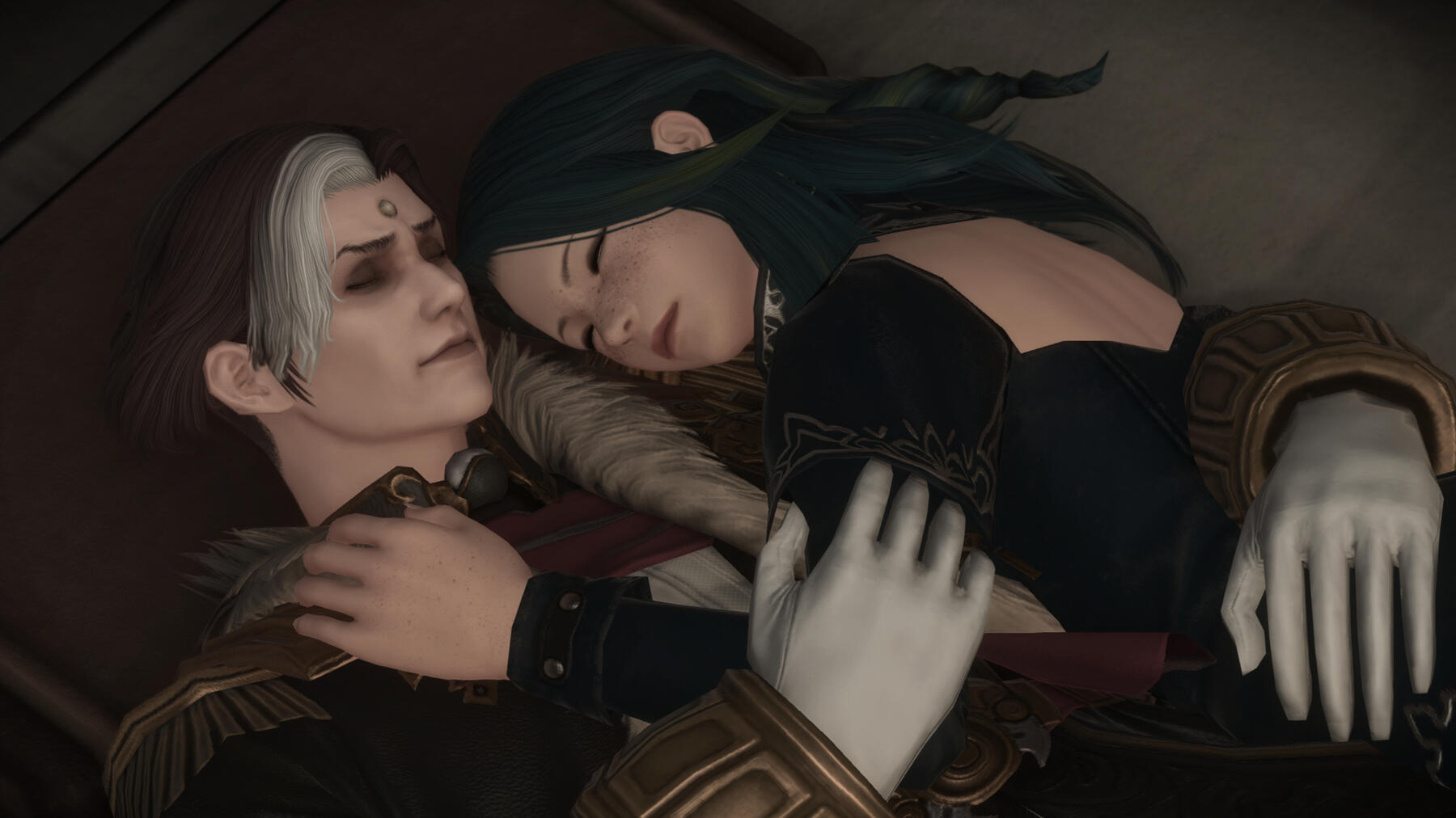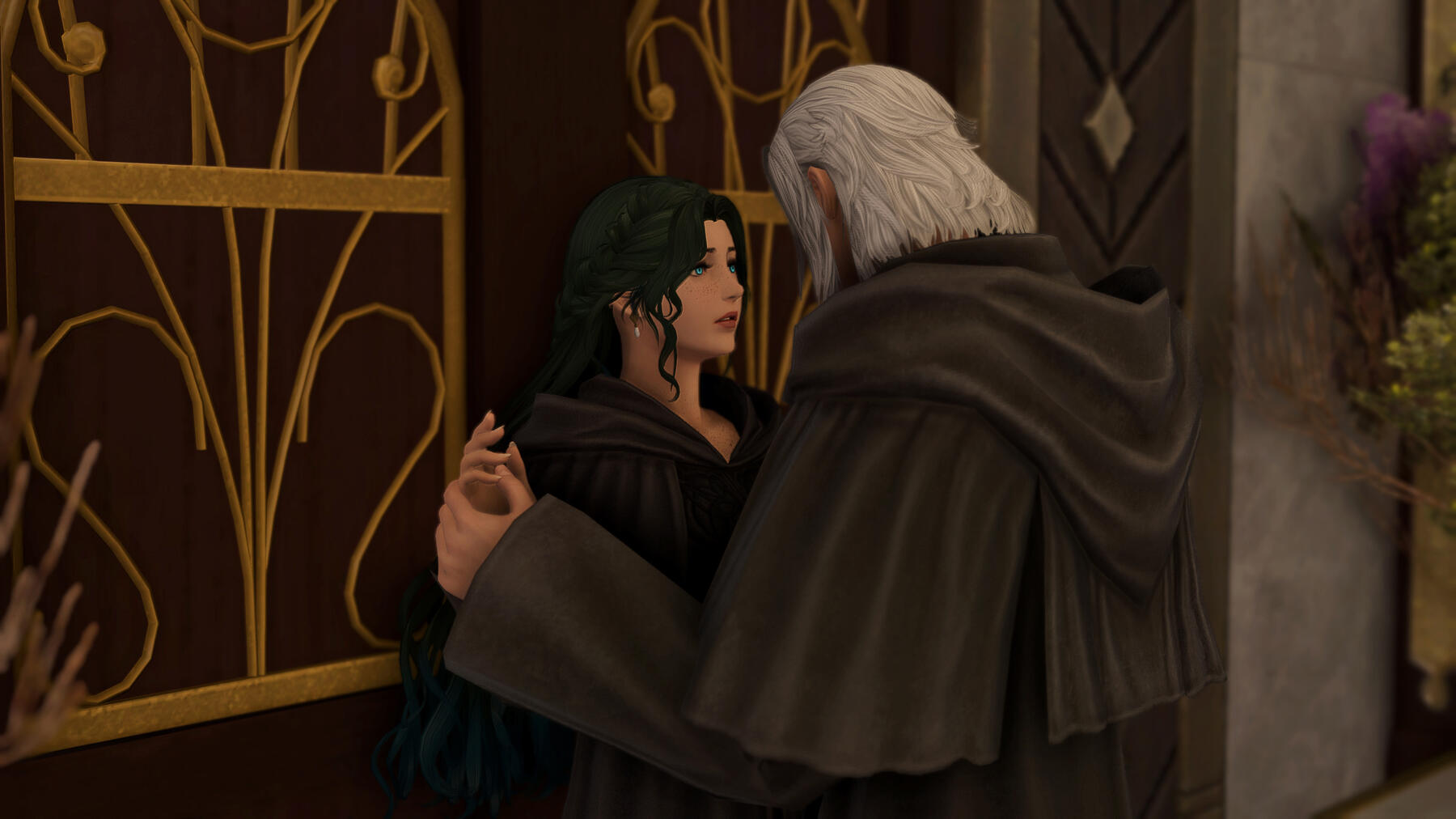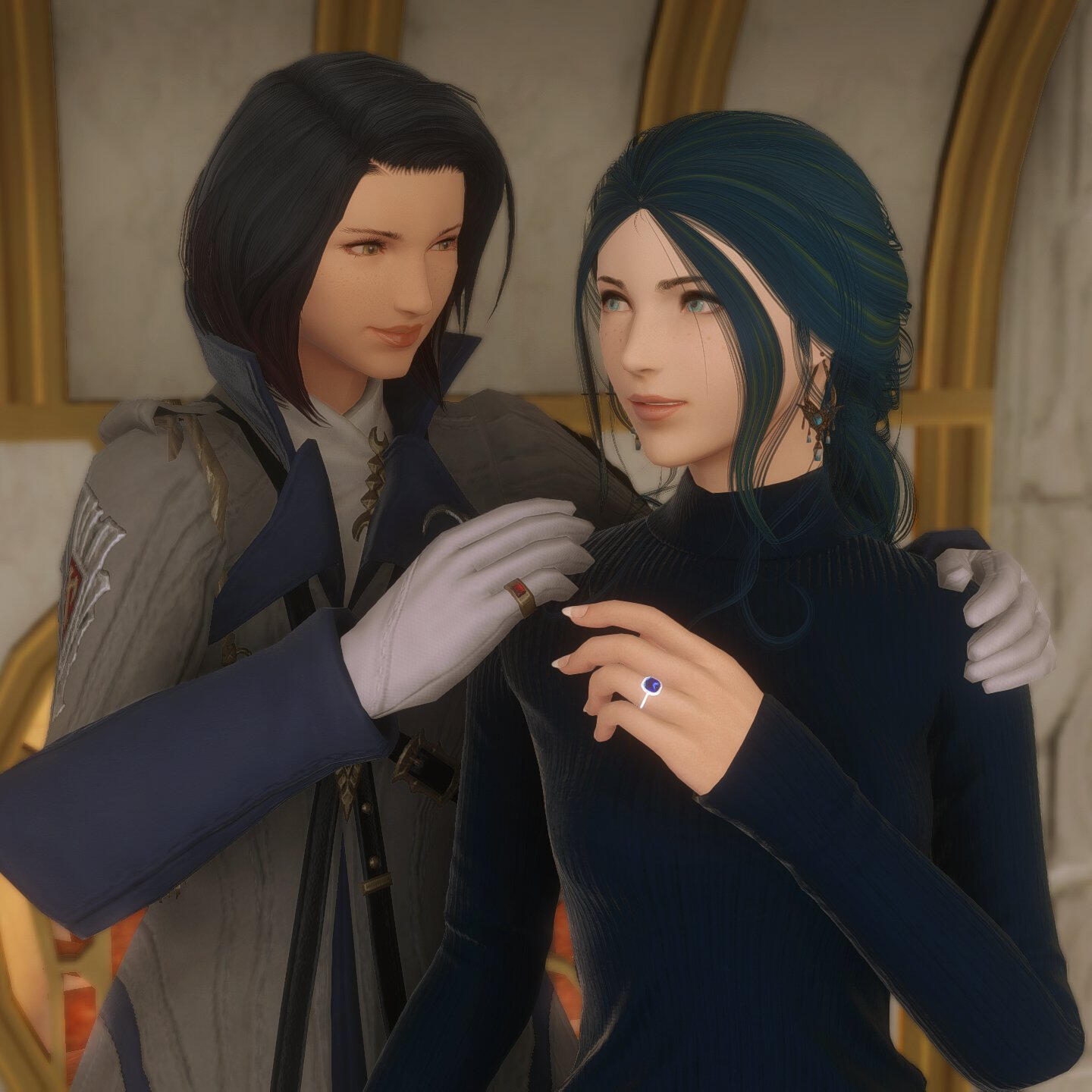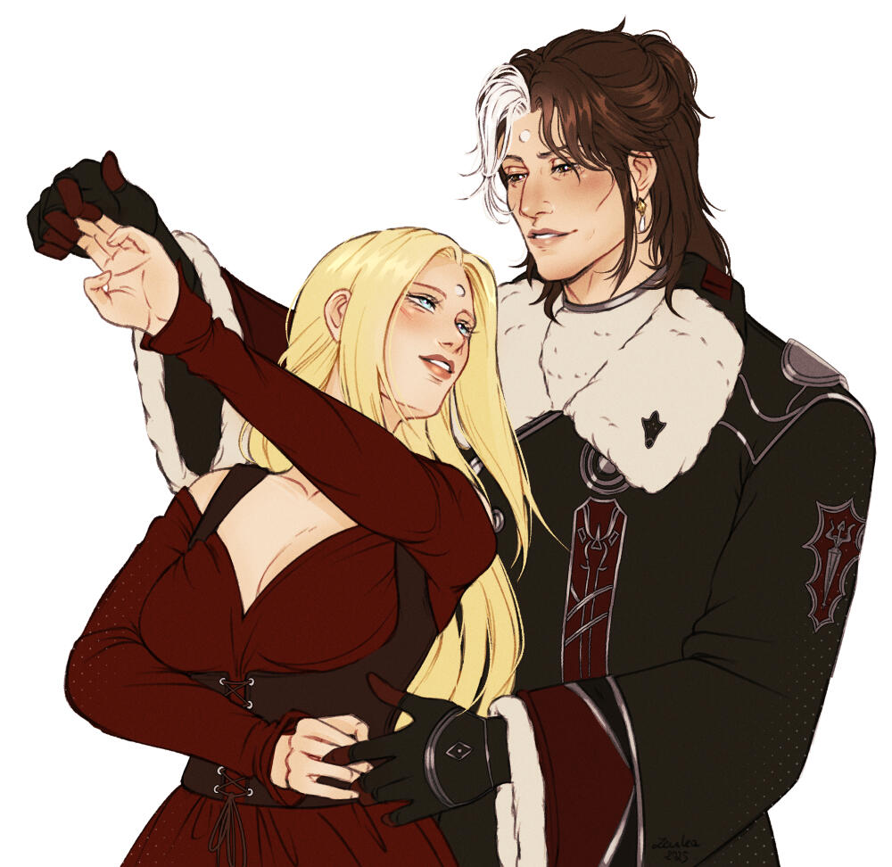 Thancred charmed Gemma as a young and fresh Scion, and thus she developed an early crush on him. But in time, his flirtations with others pushed her away, and the two of them were completely different people by the time they met up again in Ishgard. Thancred never forgave himself for messing up what could've been with her, but now they are the fiercest of friends protecting the other.