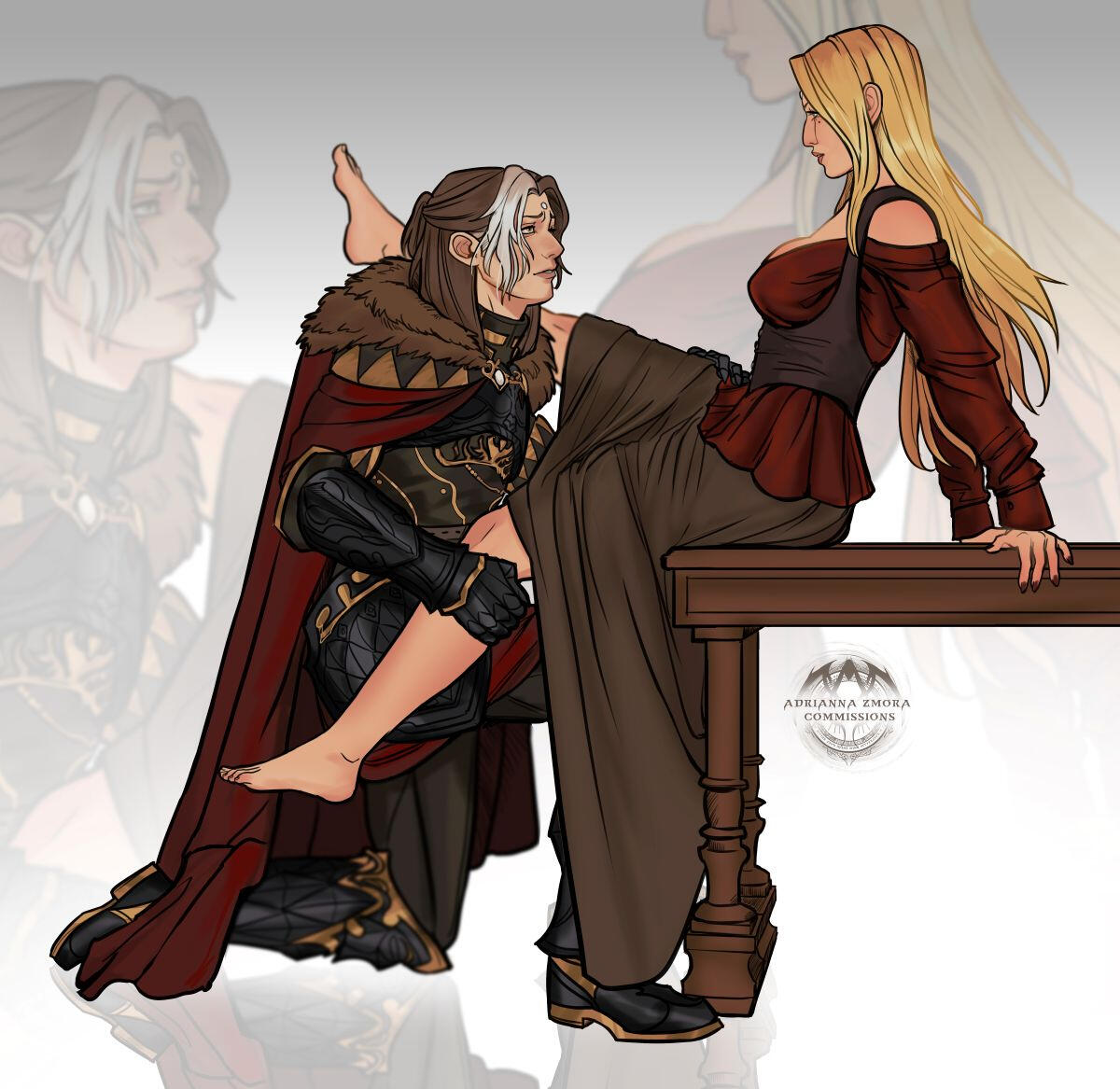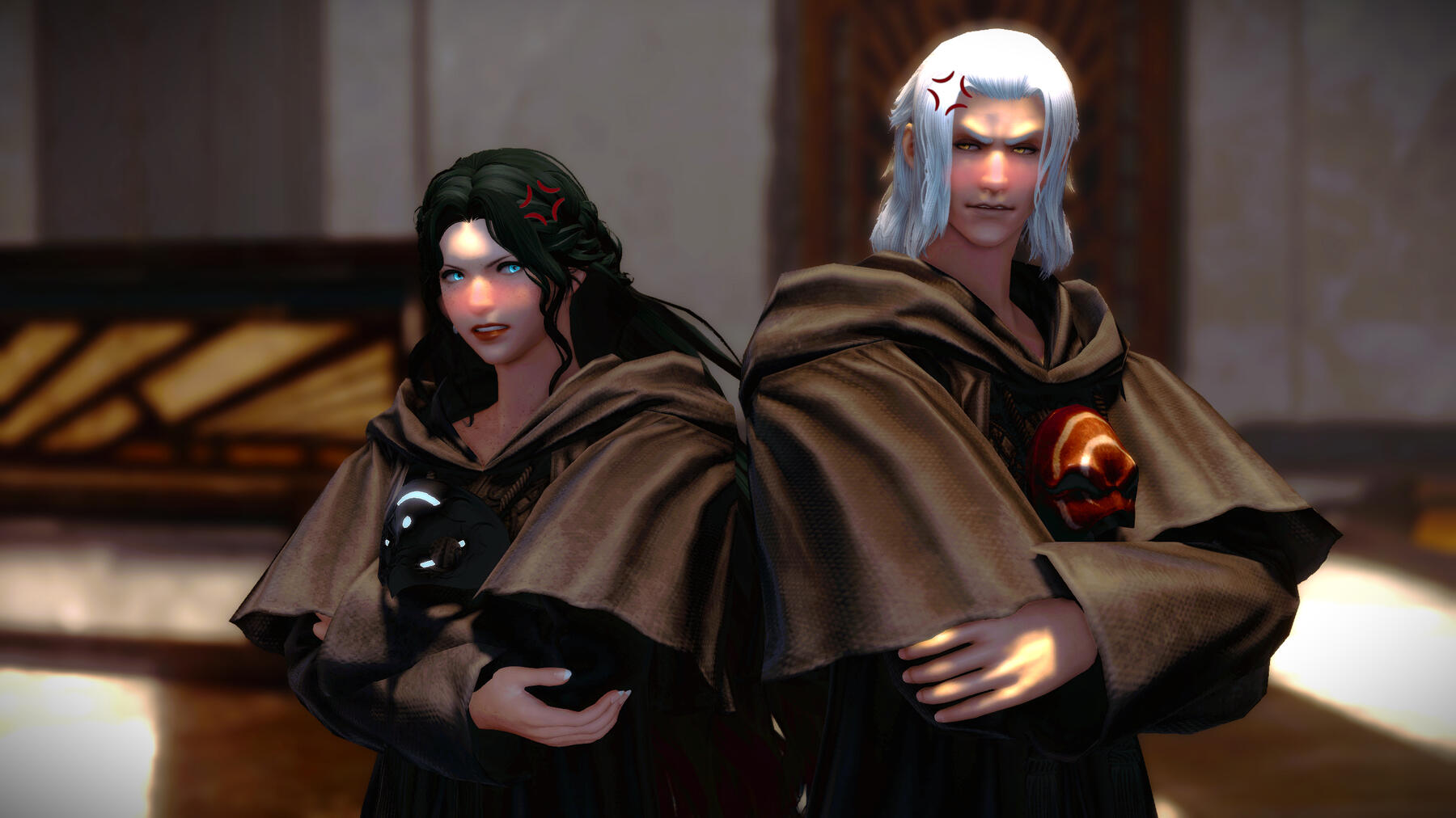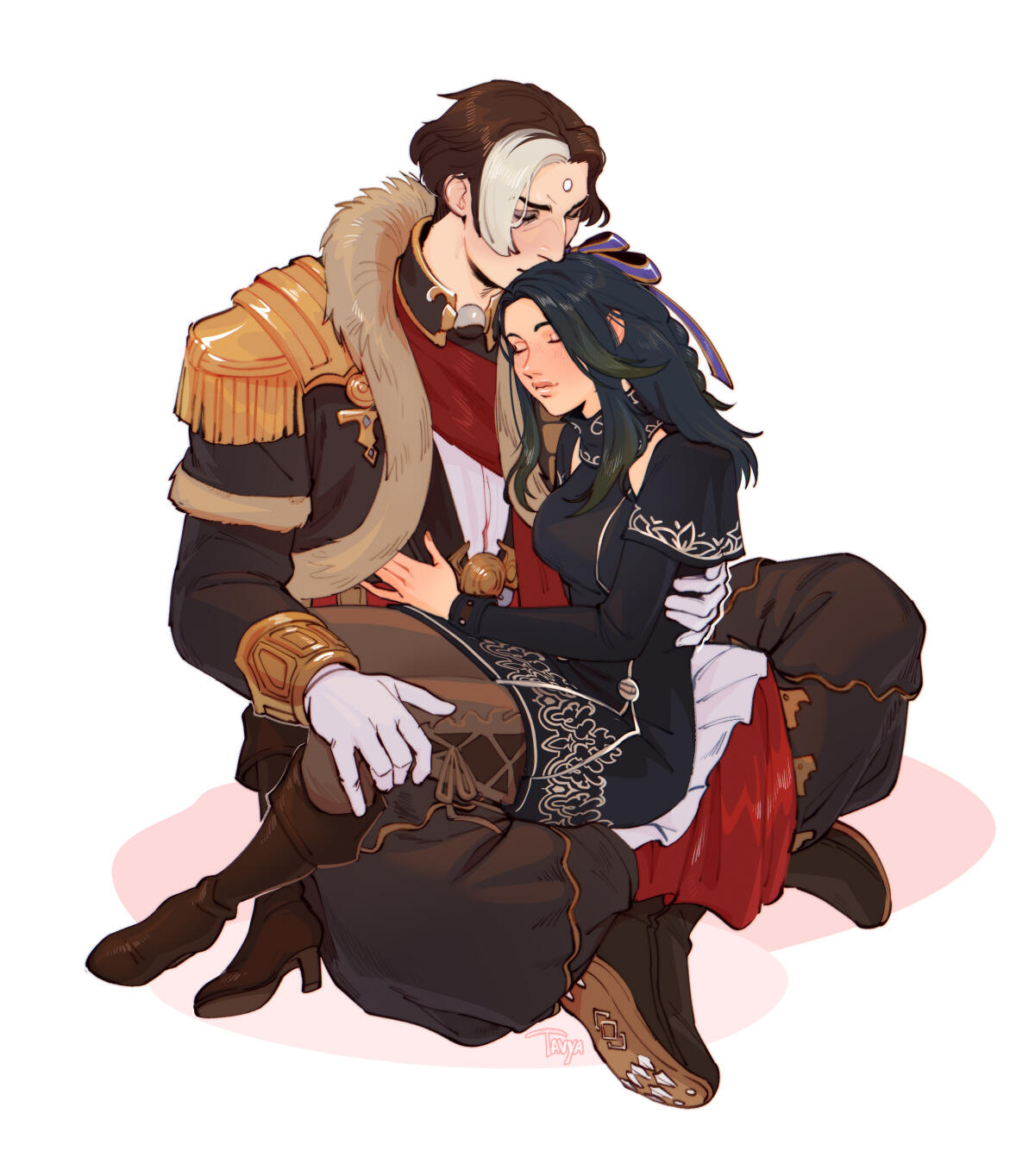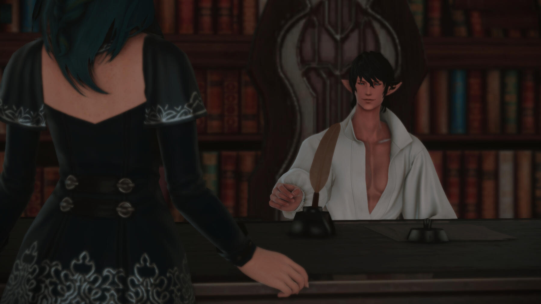 Thancred charmed Gemma as a young and fresh Scion, and thus she developed an early crush on him. But in time, his flirtations with others pushed her away, and the two of them were completely different people by the time they met up again in Ishgard. Thancred never forgave himself for messing up what could've been with her, but now they are the fiercest of friends protecting the other.