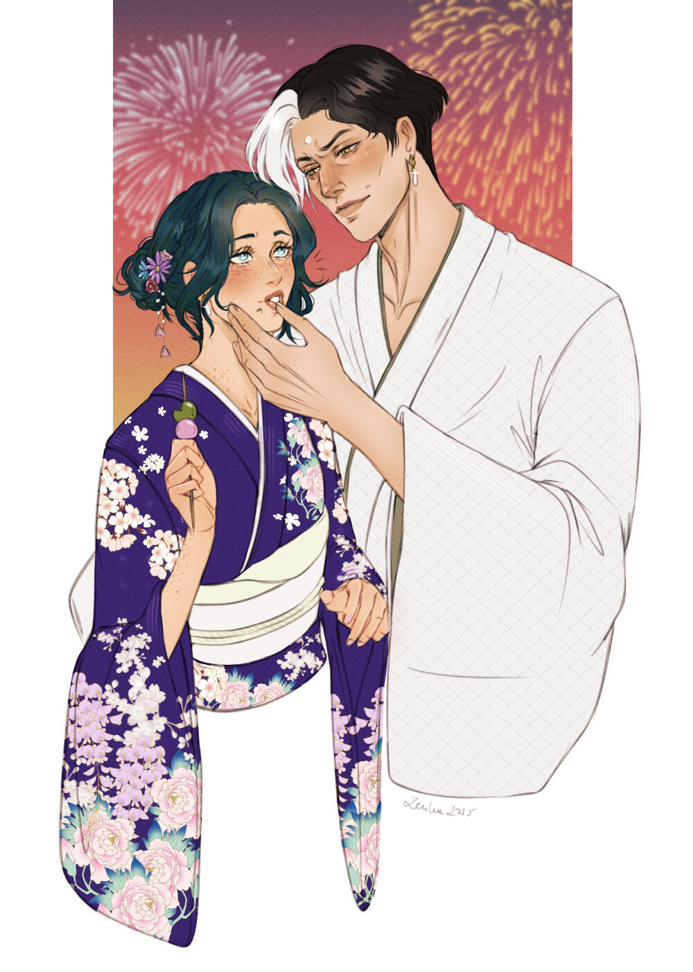 After staying a week in Old Sharlayan, Gemma finishes the remainder of her recovery in Ishgard with Hades in tow. But the sins of their past prevent them from easily moving forward into whatever their relationship is now. With the Scions disbanded and her desire to step away from duties towards the star, Gemma decides to bring them both to the island she owns in the Cieldalaes. She hopes that there, they can figure out their new relationship and heal from the wounds of their past. They continue to go through countless struggles with their feelings and the reality of this new normal, but in time, their love for one another proves to be an unbreakable connection that allows them to heal and move forward. Nearly nine moons after their battle at the edge of the universe, Gemma finds herself pregnant with her and Hades's first child - an unsundered soul reborn after being released from Zodiark. Upon this discovery, Hades realizes his happiness - and how he, too, deserves this. He proposes to Gemma and they renew their bonding within the next moon. Zagreus is born some moons later, and then they have a more traditional wedding ceremony with their family and friends on the island.