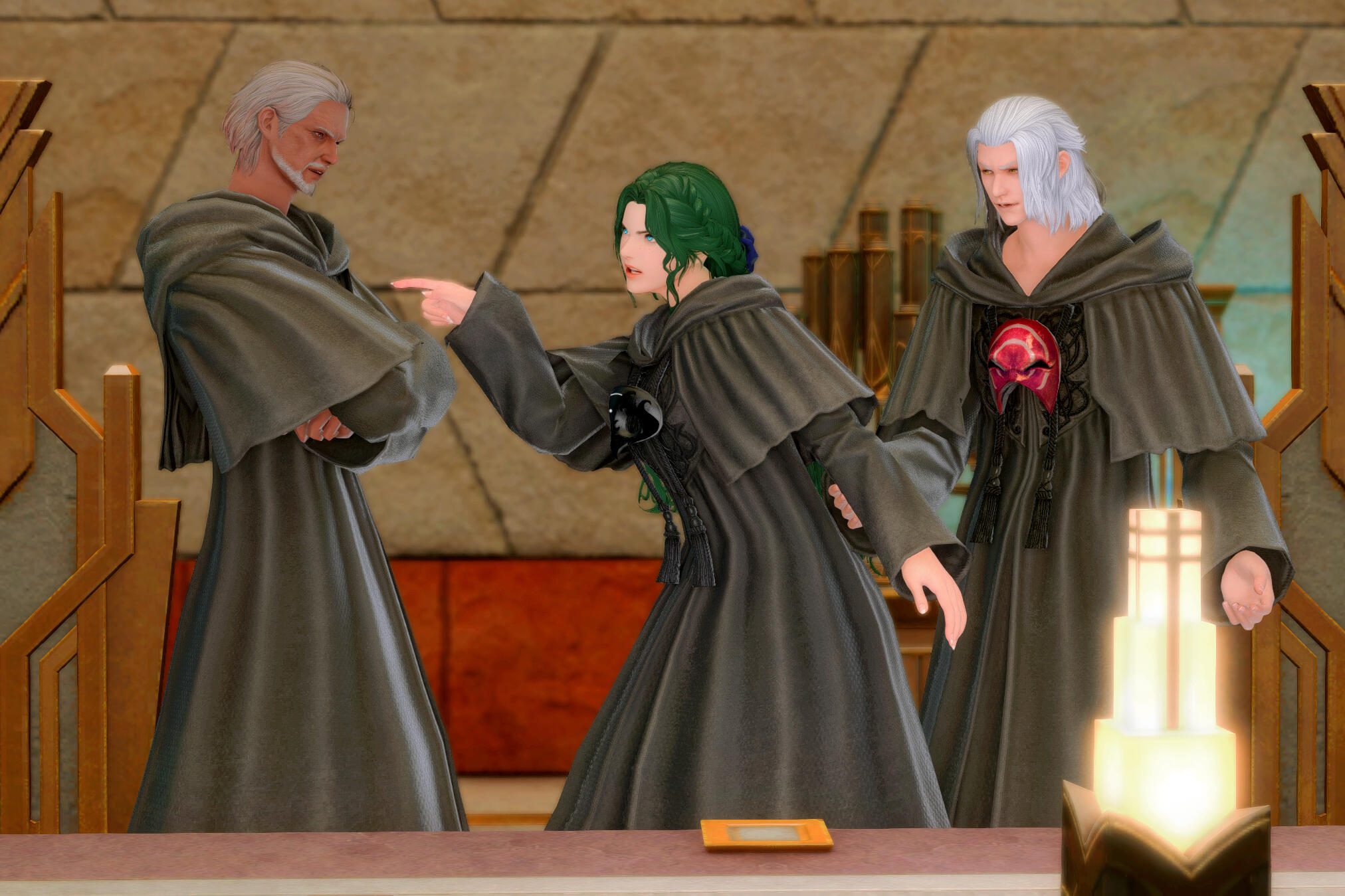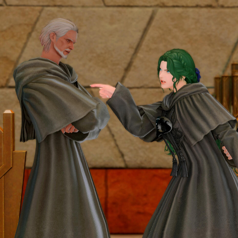 While Gemma was heartbroken by Urianger's involvement with Minfilia's fate, she tried form a friendship with him, especially given Moenbryda's love for him. He taught her the very basics of healing which they bonded over. But his continued lies on the First brought a further rift between them. He acknowledged the hurt he'd caused, and in time they've become slow friends again.