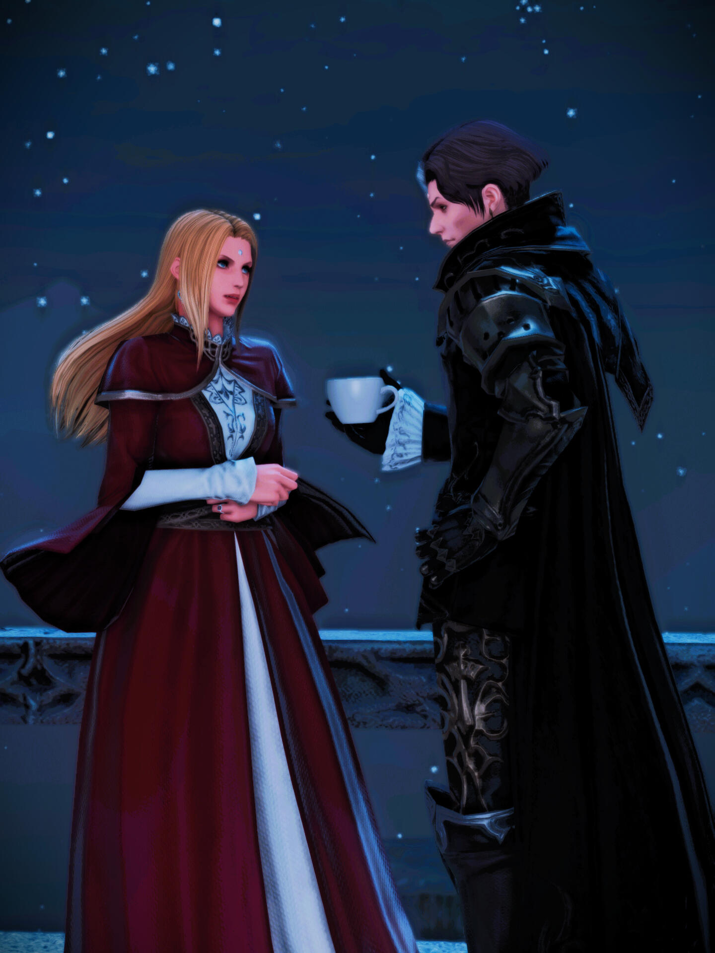 When Gemma was spending much of her time in Ishgard, she yearned to do something more to help rebuild what was destroyed due to the Dragonsong War. Francel had similar goals, and the two of them worked together to create the Firmament to help the struggling people of Ishgard. In that time building and crafting the new district for Ishgard, they became respected friends.