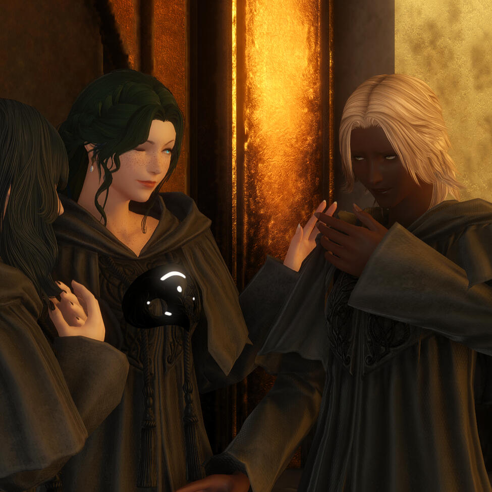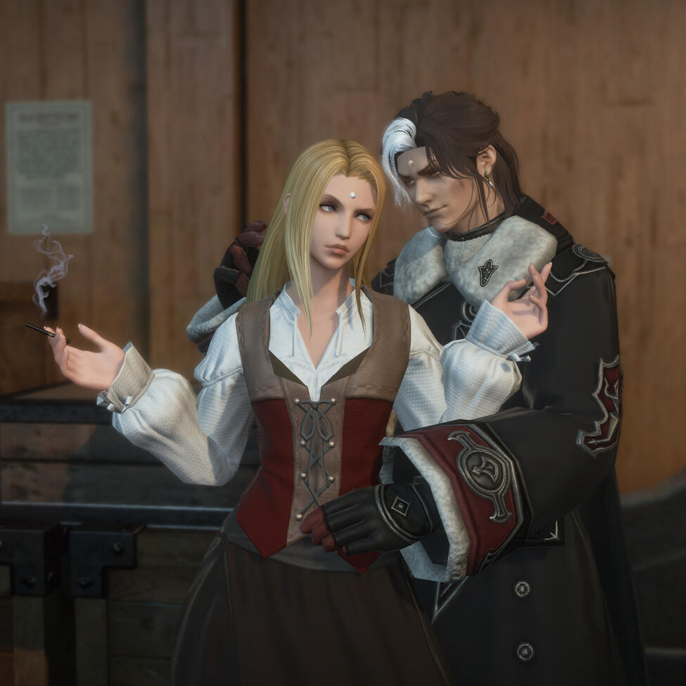 I like talking about FFXIV lore, especially anything related to the Ascians, ancients, unsundered world, Garlemald, and Ishgard. My Warrior of Light is Gemma, my Azem is Persephone, and my Empress of Garlemald is Aviva. Favorite pairings are Emetwol, Azemet, and Wolmeric. I enjoy commissioning artists, writing, and gposing.