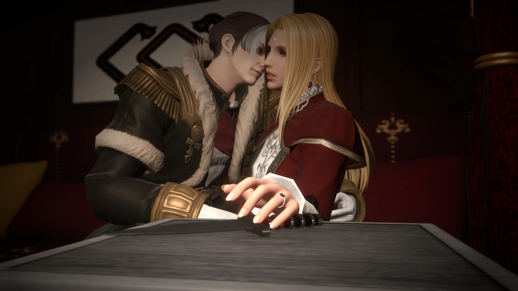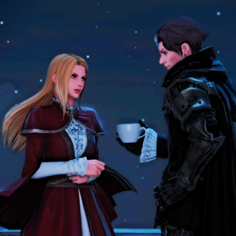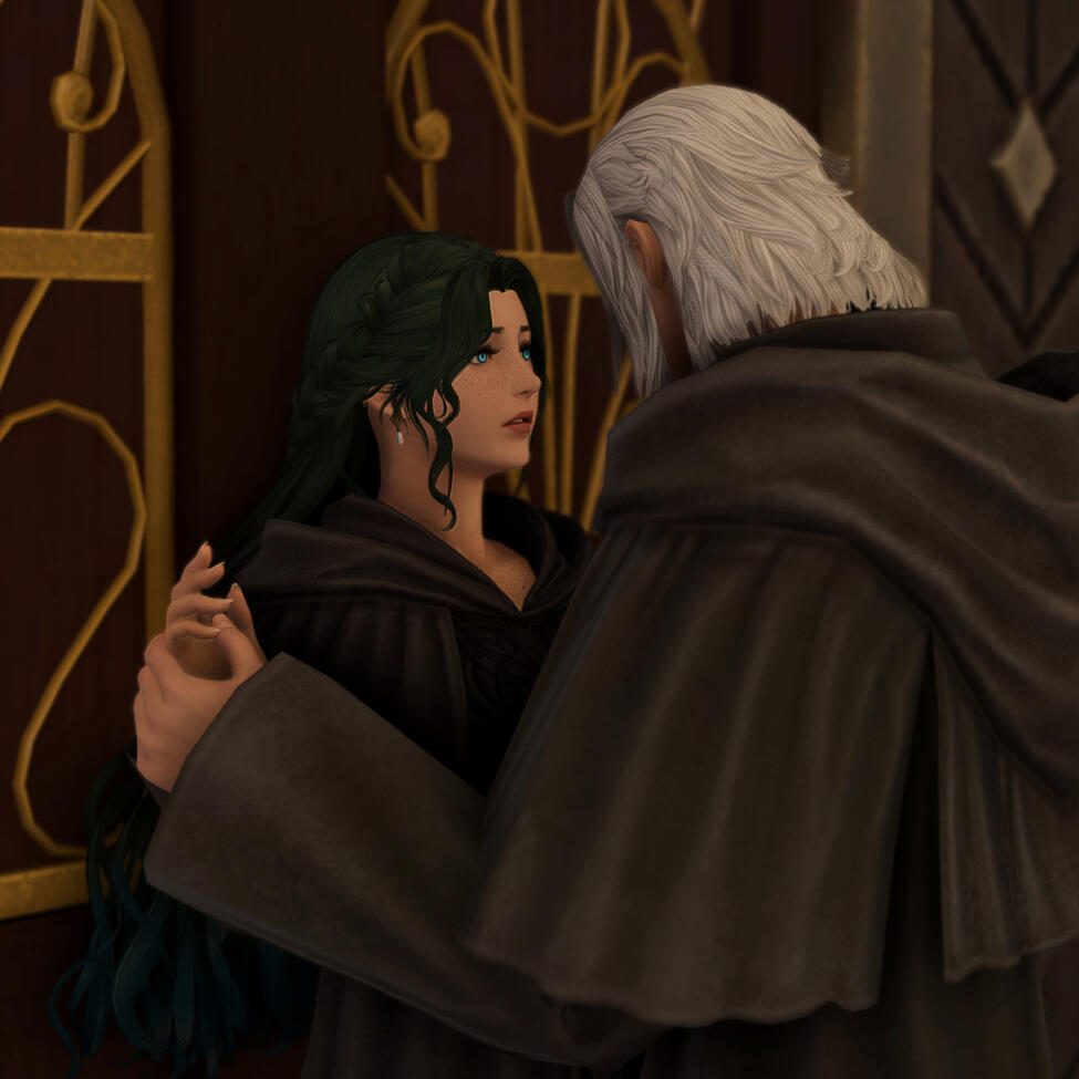 The betrayal and tragedies at the Bloody Banquet deeply traumatized Gemma, fleeing to the city of Ishgard for refuge with Alphinaud and Tataru. Now nearing her 30s, never has she felt more alone and hopeless with the absence of many of her comrades in a place where she would be treated as an outsider. But the warmness of her new allies - Aymeric, Estinien, Ysayle, Haurchefant, and the entire Fortemps family - revitalize that spark within her to fight for this nation's freedom from the shackles of a false faith that would continue the war between man and wyrm. And after the defeat of the primal King Thordan, Gemma realizes she may yet have found a place to call home with her affections for a certain Lord Commander blossoming. With their determination to bring peace, they work together to end Nidhogg's bloody war against Ishgard, freeing their comrade, Estinien, from the wyrm's hold. Gemma has become the Savior of Ishgard, and it was she who completely enamored Aymeric, their affections for one another at last reciprocated after a fateful dinner together. Unfortunately, their blossoming relationship would go through many trials with the challenges to come.