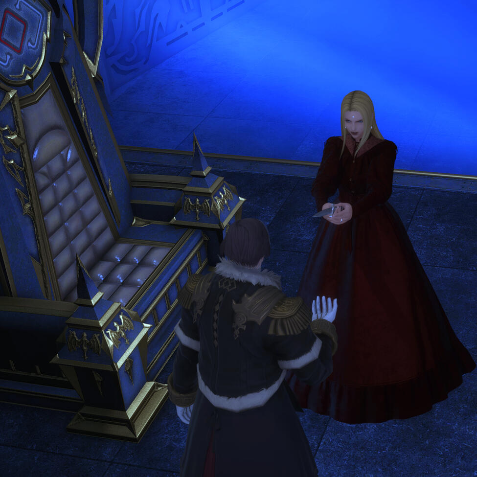 With Venat choosing to step down from the seat of Azem, the Convocation of Fourteen unanimously elect Persephone to the esteemed group of leaders. The Fourteenth seat is the most unique of the Convocation - instead of remaining in Amaurot to work at the Capital, Azem would travel the star to gain intimate knowledge. The counselor to the people and the world. The Shepherd to the Stars. Persephone was a perfect fit for the role, and she accepts the seat with determination to make their star a better place. As expected, she challenges the other members over their more traditional solutions, often choosing to solve matters herself with her comrades around the star instead of involving the Convocation. She will quarrel with Lahabrea in particular, both getting on each other's nerves with their strong but differing personalities. But with others, she forms even more bonds of friendship and respect. She grows fond of Themis, the Emissary of the Convocation and holder of the seat of Elidibus, and finds someone akin to a little brother she never had in him. But in her time as Azem, she notices a subtle change within Hades as he completely devotes himself to his own Convocation duties...
