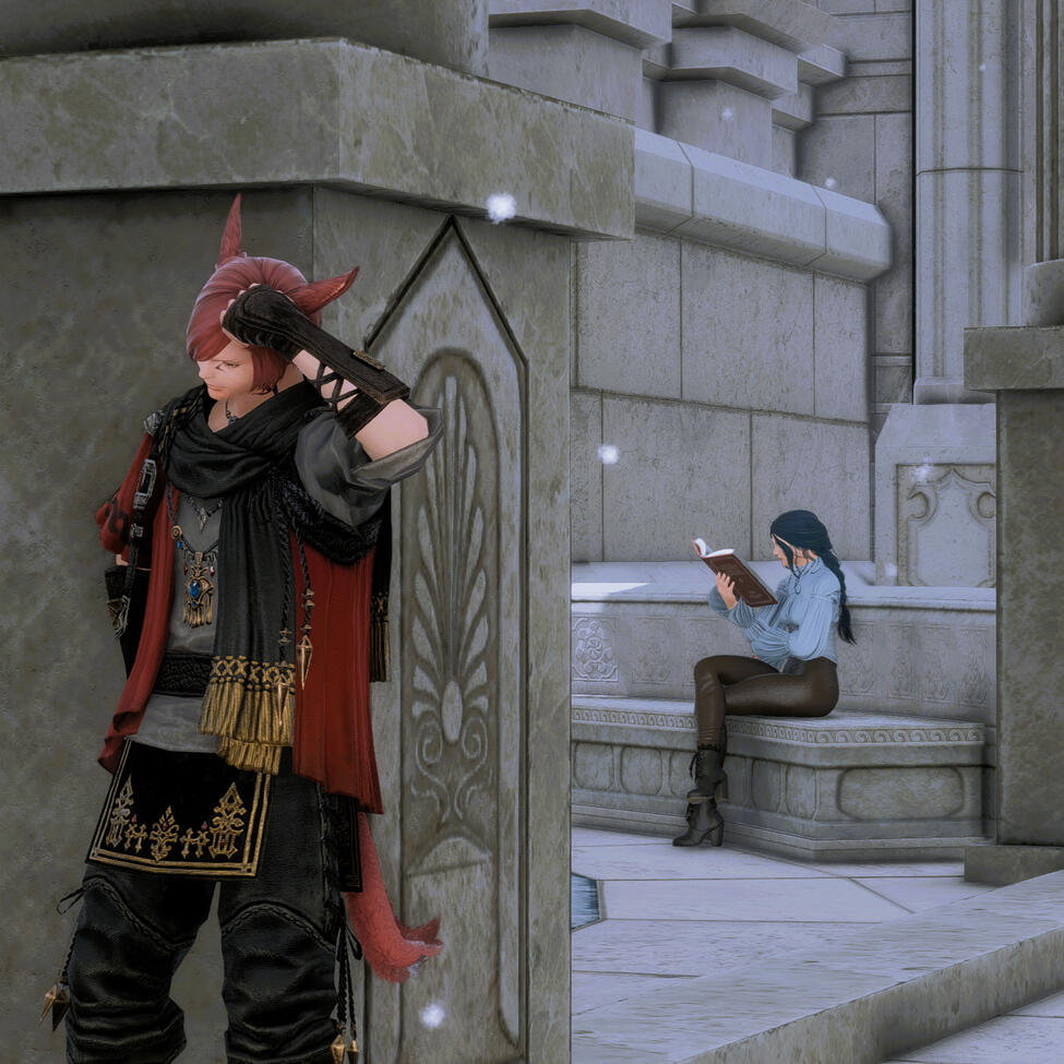 I love pretty much all parts of the game - crafting, gathering, leveling jobs, relic grinding, raiding, glamour. While I've played and leveled all jobs, dragoon is my baby and Gemma's canon job. I've done ultimates and savage but am taking a break from raiding.